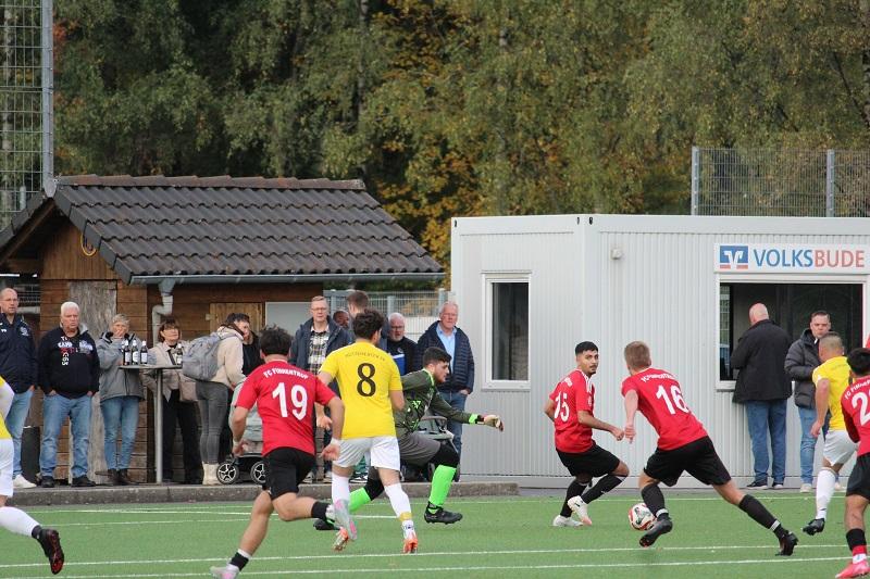 In der 69. Minute geriet der Hützemerter SV zudem noch in Unterzahl, da Alexander Meier Gelb/Rot erhielt. Dies machte es allerdings für den FC Finnentrop nicht leichter, da Hützemert fortan buchstäblich mit Mann und Maus den knappen Vorsprung verteidigte und sich außerdem durch mehrere gefährliche Konter Luft verschaffen konnte.  Schließlich gelang Timo Barth (90. Min + 7) doch noch der Ausgleich zum vielumjubelten 1:1. Angesichts des Spielverlaufs ein glückliches Endergebnis.