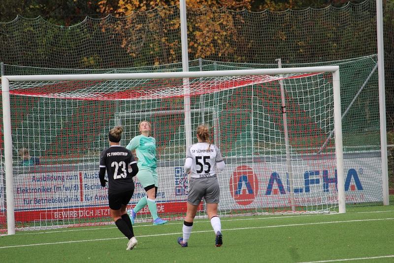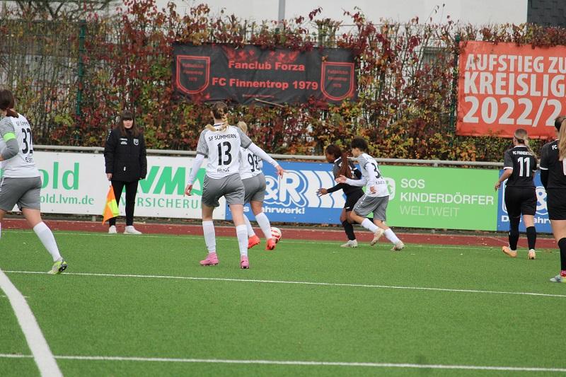 Am heutigen Spieltag machten die Frauen des FC Finnentrop den Anfang. Zu Gast war der Tabellenletzte SF Sümmern 2. In dieser Konstellation war ein Heimsieg alternativlos. Die von Personalsorgen geplagten Finnentroperinnen hatten dennoch das Spiel weitgehend im Griff und eindeutig in Anzahl und Qualität die besseren Torchancen. Die Chancenverwertung war allerdings völlig ungenügend. Das Tor des Tages fiel in der 71. Minute. Lena Berghoff wurde im Gästestrafraum gefoult. Den fälligen Strafstoß verwandelte Mimoza Bujupaj sicher. Am Ende war es ein verdienter Heimerfolg, der aber durch die Verletzung von Abwehrspielerin Zoe Bruse getrübt wurde. Eine abschließende Diagnose steht noch aus.