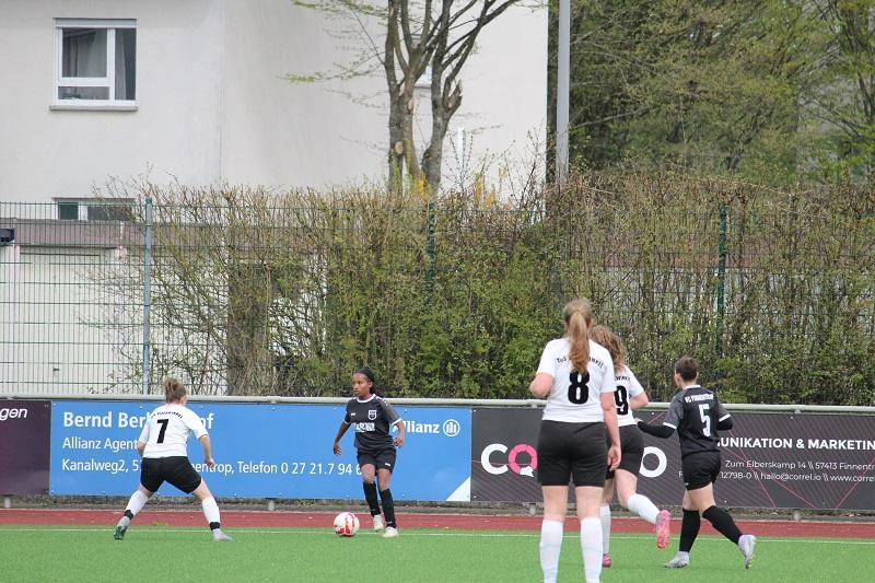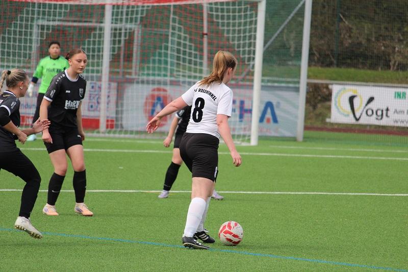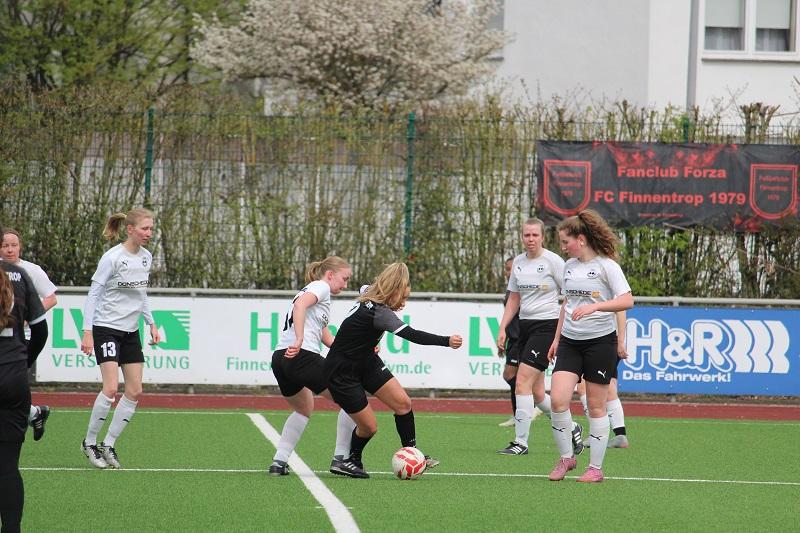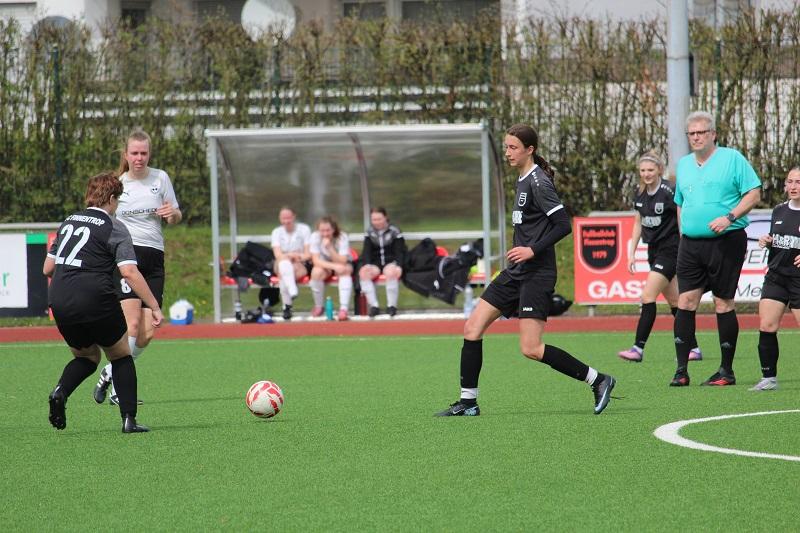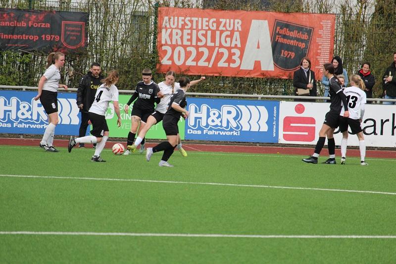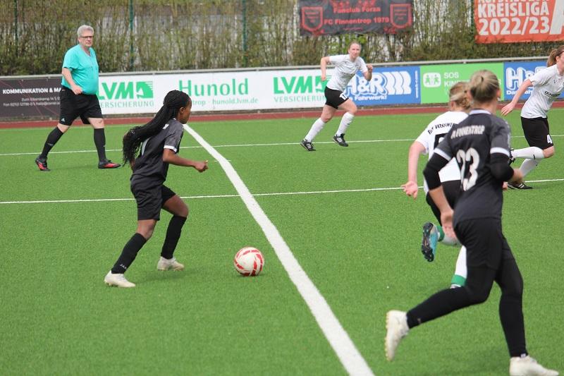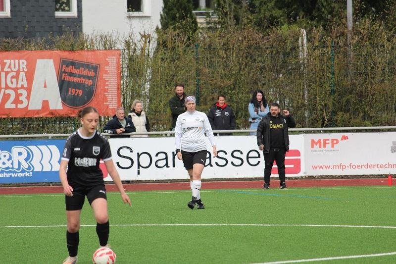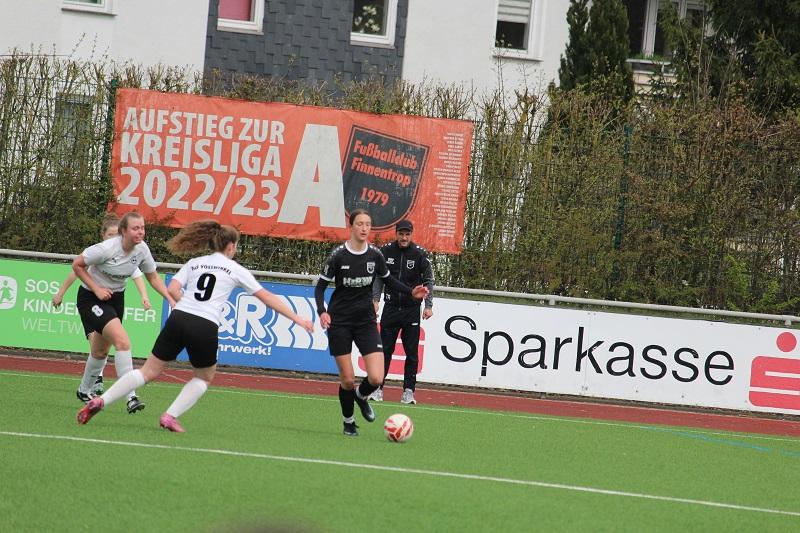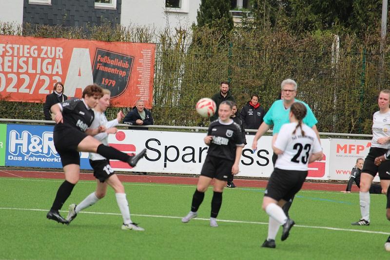 In diesem Spiel war Druck auf dem Kessel. Beide Teams benötigten die Punkte dringend im Abstiegskampf. In der ersten Halbzeit sahen die Zuschauer eine ausgeglichene Partie mit wenigen Torchancen. Die glückliche Pausenführung für die Gastgeberrinnen markierte in der 45. Minute Angelina Bogatschweski. Die gleiche Spielerin war auch direkt nach der Pause zur Stelle und erzielte in der 48. Minute das 2:0. Eine günstige Konstellation, zumal der FC Finnentrop das Spiel immer besser in den Griff bekam. Das 3:0 in der 54. Minute durch Lorena Winkel war eine kleine Vorentscheidung. Der TuS Voßwinkel verkürzte in der 58. Minute durch Verena Giese auf 3:1. Der FC Finnentrop ließ sich das Spiel aber nicht mehr aus der Hand nehmen. Lena Berghoff stellte in der 79. Minute mit ihrem Treffer zum 4:1 den alten Abstand wieder her. Ein Tor des Monats sorgte für den 5:1-Endstand. Mittelfeldspielerin Lisa Vogt zimmerte das Spielgerät in der 86. Minute aus dreißig Meter Entfernung in den Winkel. Das war der Schlusspunkt zu einem verdienten Heimerfolg.