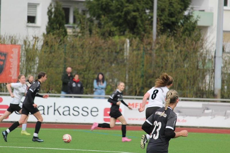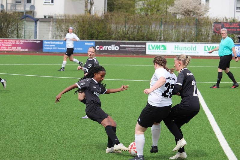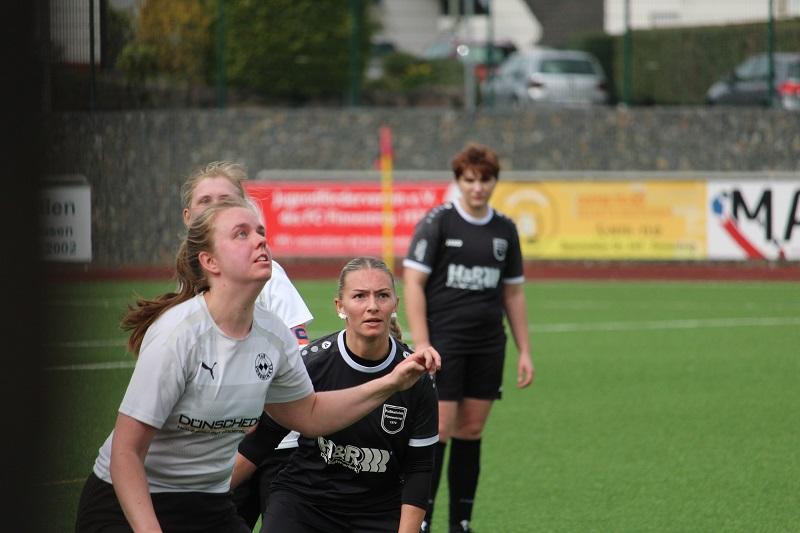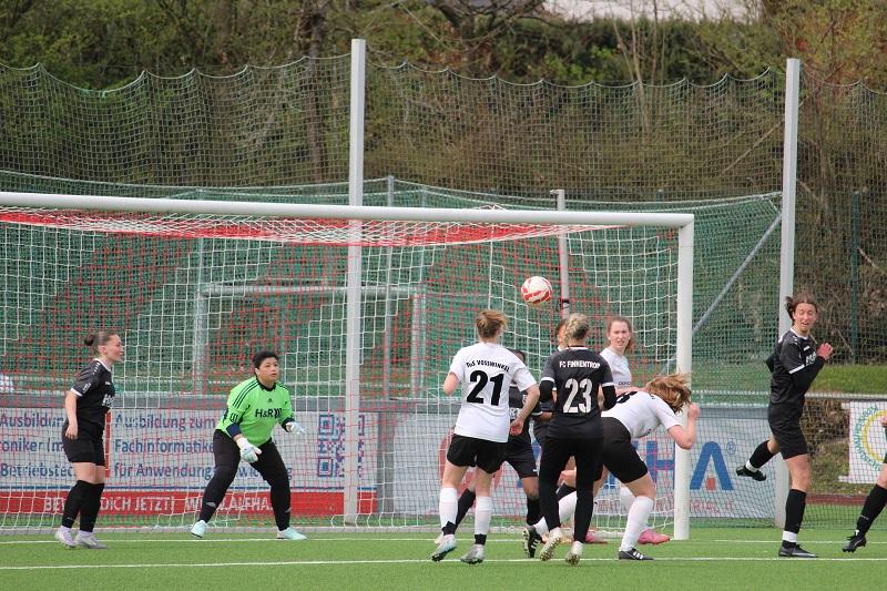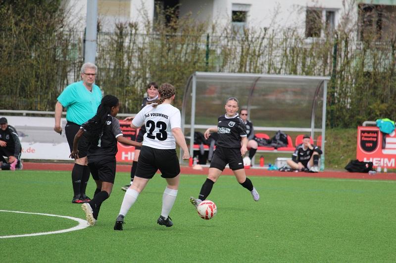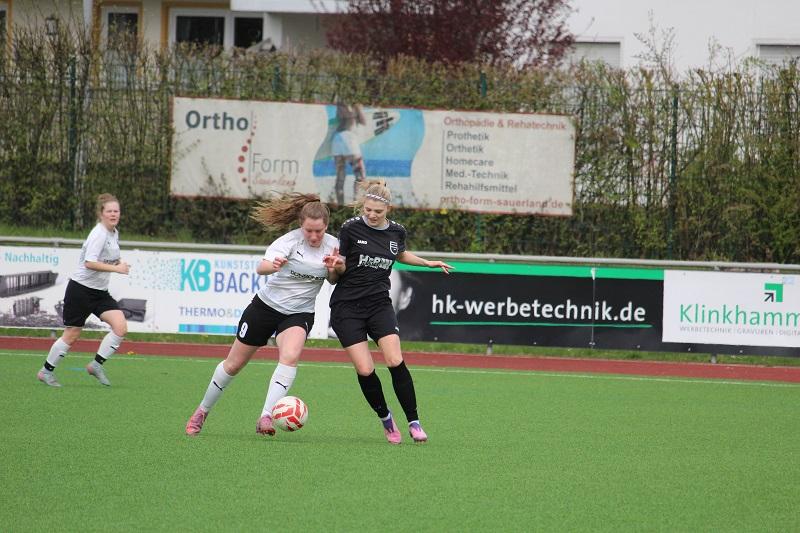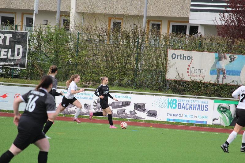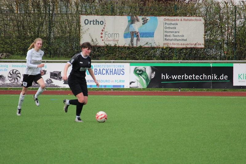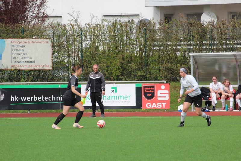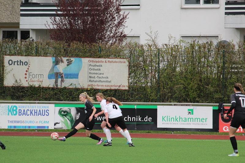 In diesem Spiel war Druck auf dem Kessel. Beide Teams benötigten die Punkte dringend im Abstiegskampf. In der ersten Halbzeit sahen die Zuschauer eine ausgeglichene Partie mit wenigen Torchancen. Die glückliche Pausenführung für die Gastgeberrinnen markierte in der 45. Minute Angelina Bogatschweski. Die gleiche Spielerin war auch direkt nach der Pause zur Stelle und erzielte in der 48. Minute das 2:0. Eine günstige Konstellation, zumal der FC Finnentrop das Spiel immer besser in den Griff bekam. Das 3:0 in der 54. Minute durch Lorena Winkel war eine kleine Vorentscheidung. Der TuS Voßwinkel verkürzte in der 58. Minute durch Verena Giese auf 3:1. Der FC Finnentrop ließ sich das Spiel aber nicht mehr aus der Hand nehmen. Lena Berghoff stellte in der 79. Minute mit ihrem Treffer zum 4:1 den alten Abstand wieder her. Ein Tor des Monats sorgte für den 5:1-Endstand. Mittelfeldspielerin Lisa Vogt zimmerte das Spielgerät in der 86. Minute aus dreißig Meter Entfernung in den Winkel. Das war der Schlusspunkt zu einem verdienten Heimerfolg.
