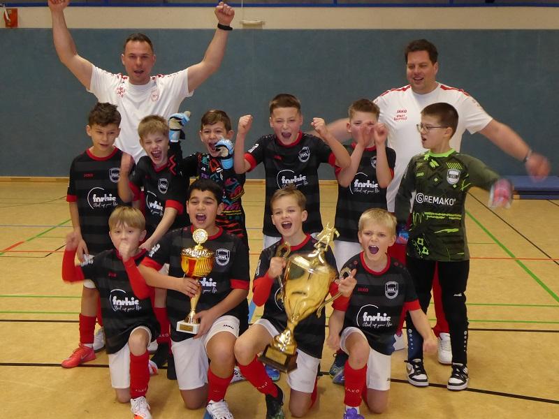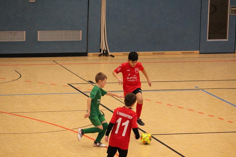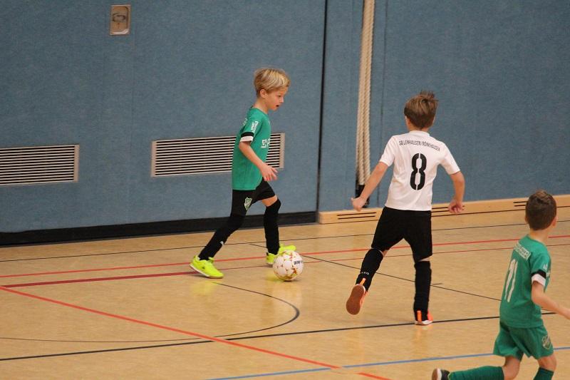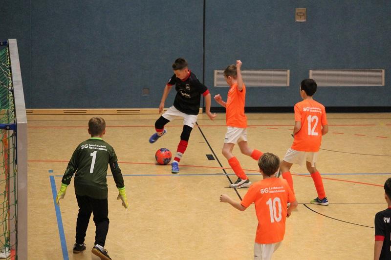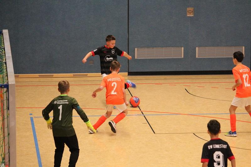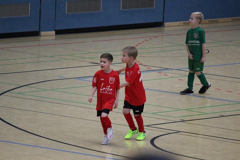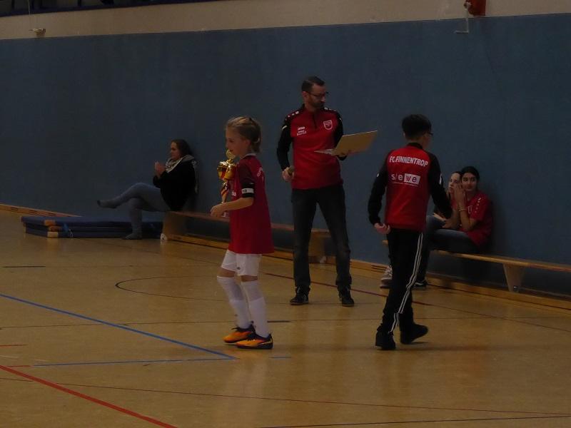 Auch das zweite Hallenfußballturnier des Tages, das Turnier der E-Junioren, wurde im Modus Jeder-gegen-Jeden ausgespielt. Teilnehmer waren die Teams des SV Heggen, SpVg Olpe, FC Finnentrop, RW Lennestadt-Grevenbrück, JSG Hünsborn/Rothemühle, SG Lenhausen/Rönkhausen und JSG Dünschede/Helden. Nach spannenden Spielen konnte am Ende RW Lennestadt-Grevenbrück das Turnier für sich entscheiden und den E-Junioren-Wanderpokal des FC Finnentrop erringen. Die abschließende Siegerehrung wurde vom Jugendleiter des FC Finnentrop, René Liedmann, durchgeführt, wobei jedes Team mit einem Pokal ausgezeichnet wurde.