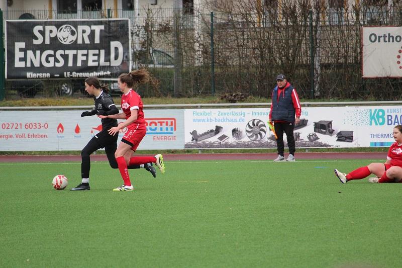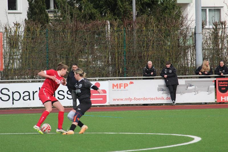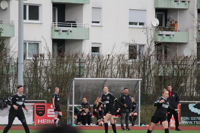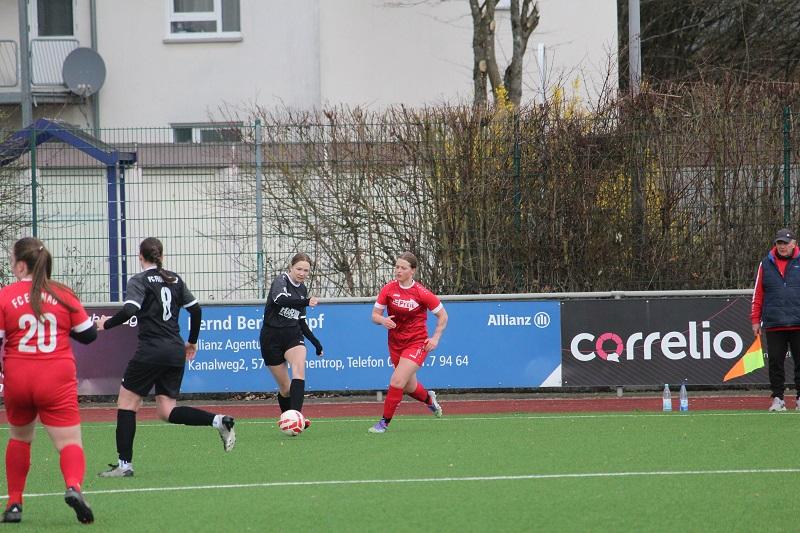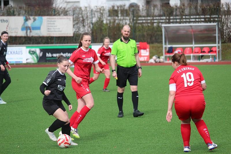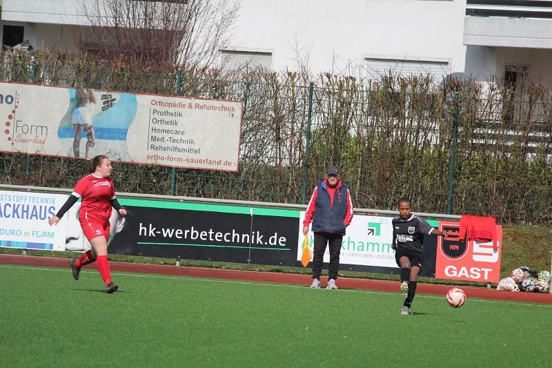 Die Frauen des FC Finnentrop können erstmal aufatmen. Im Tabellenkeller wurden gegen den unmittelbaren Konkurrenten FC Ebenau drei wichtige Punkte errungen. Das Team von Trainerduo Patrick Vergellito und Mentor Bujupaj war über die gesamte Spielzeit tonangebend. Lena Berghoff brachte ihre Farben in der 10. und der 18. Minute mit einem Doppelschlag früh mit 2:0 in Führung. Ein lupenreiner Hattrick von Franziska Neu (28., 38. und 40. Minute) sorgte für die deutliche Pausenführung und letztendlich Vorentscheidung. Nach Wiederanpfiff startete der FC Finnentrop furios und machte bereits in der 46. Minute durch Amina Gante das halbe Dutzend voll. In der Folge traf Lena Berghoff noch zweimal das Aluminium, aber am Ergebnis änderte sich nichts mehr.