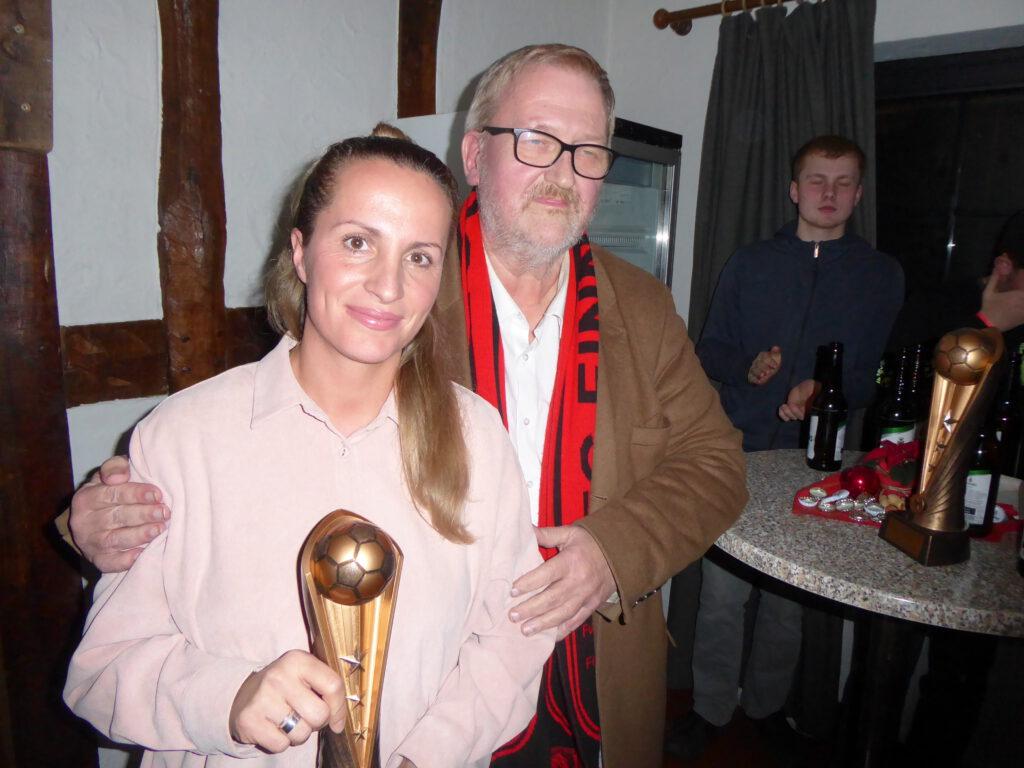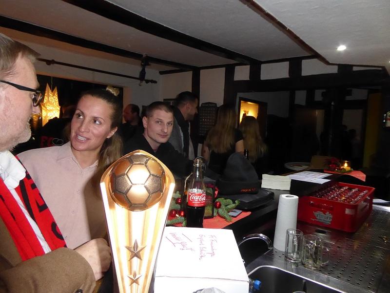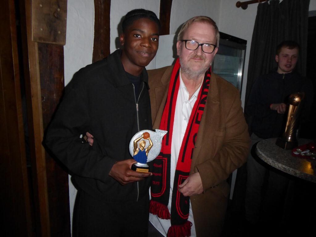 Nach fünf Jahren Pause fand am letzten Freitagabend wieder eine Weihnachtsfeier des FC Finnentrop statt. Ein gelungener Restart in einer tollen Location, dem früheren “Alten Hof” in Finnentrop. Die Feiern in den Jahren bis 2019 haben mittlerweile schon Legendenstatus und waren immer ein Höhepunkt im Veranstaltungskalender des Vereins. Insofern war jetzt auf vielfachen Wunsch die Wiederaufnahme dieser vorweihnachtlichen Feierlichkeit eine logische Konsequenz. Unsere Aktiven aus den Fußballmannschaften und dem Basketballteam waren besonders stark vertreten. Ein Höhepunkt war wie immer die Sonderehrung für unsere Sportlerinnen und Sportler. Vorsitzender Engelbert Schulte überreichte zunächst einen Erinnerungspreis an Mohammed Abdoulaye, unserem “Basketballspieler des Jahres 2025”. Der junge Basketballer gehört zu den Topscorern in der Bezirksliga und ist somit ein Erfolgsgarant für die gute Platzierung unserer “Black Fire” FC Finnentrop Basketball. Bei den Fußballern fiel die Wahl zur “Spielerin des Jahres” auf Mimoza Bujupaj. Mit ihrer Routine und fußballerischen Klasse ist sie immer noch eine wichtige Konstante unserer Frauenmannschaft. Zum “Spieler des Jahres” wurde Jonas Kirchhoff gekürt. Ein echter Führungsspieler, der durch Leistung und Zuverlässigkeit besticht. Wir gratulieren allen Geehrten und wünschen weiterhin verletzungsfreie Spiele und den bestmöglichen Erfolg.